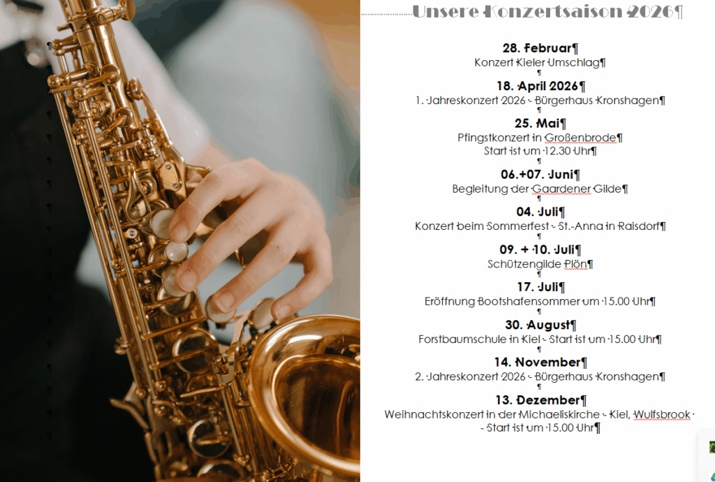 Viele Vorbereitungen laufen bereits für die Konzertsaison 2024 und zusätzlich werden wir an den Wertungsspielen im September in Schleswig starten.